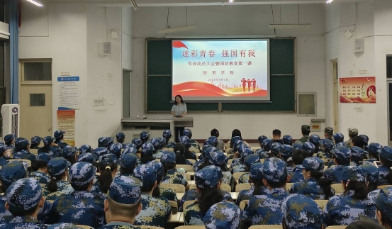 开展“迷彩青春 强国有我”2024级新生军训动员大会暨国防教育第一课。经贸学院团总支副书记苏飞向全体参训同学提出三点要求。一是要知行合一,将军训作为坚定理想信念的重要经历,弘扬军训优良作风,进一步提升思想政治素养,自觉把个人理想追求融入党和国家事业之中;二是要许党报国,以担当尽责践行初心使命,主动在军训中不断涵养爱国奋斗的精神底蕴;三是要“自找苦吃”,以脚踏实地练就过硬本领,以军人标准严格要求自己,为书写中国特色强军之路的时代答卷贡献青春力量。