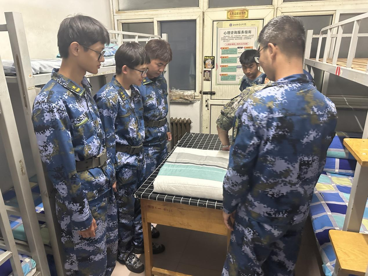 落实学生行为准则,筑牢文明校园理念。各班级通过主题班会等形式,有计划、有重点地组织新生认真学习校纪校规相关文件和管理制度,使新生尽快了解应遵守的制度与规范,规范在校期间行为。举办叠军被比赛、内务评比等,引导新生养成良好生活习惯,共同营造安全、舒适、整洁的校园环境。