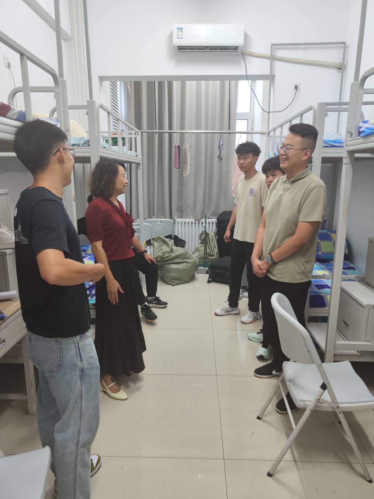 走访学生宿舍,强化安全教育。王凯颖带领全体辅导员、班主任老师走访学生宿舍,检查宿舍安全和卫生状况,了解新生新学期的学习生活适应情况,并提醒学生严格遵守学校规定,禁止使用违禁物品,确保宿舍安全。