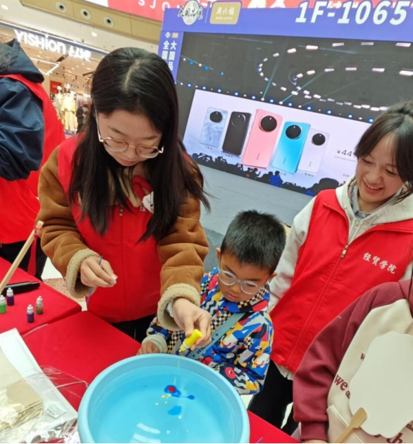 为了弘扬中华优秀传统文化,让更多人了解漆扇这一古老手工艺,经贸学院志愿者于11月13日来到聊城市万达广场,与新区街道阳光社区共同开展“扇染夏色 漆彩纷呈”漆扇主题体验活动。