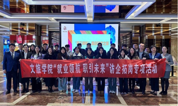 为进一步贯彻落实学校“访企拓岗促就业”专项活动精神,深化校企合作与校地融合,积极拓宽毕业生就业渠道,提升就业质量,文旅学院积极开展“就业引航,职引未来”访企拓岗专项活动。近日,团总支副书记杜辉、综合科副科长刘辉、姜琳琳、以及师生代表赴济南舜和国际酒店、美悦云禧酒店和南郊宾馆进行交流访问。