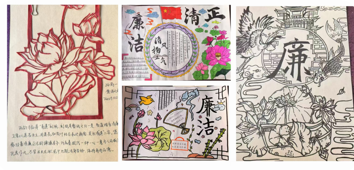 笔墨丹青营造出高洁意境,镜头聚焦清廉社会百态。本次活动评选出一等奖10幅作品,二等奖10幅作品,三等奖12幅作品。学生们将传统文化与廉洁教育相结合,创作出一幅幅精彩的作品,展现出“清风扬正气,廉洁润初心”的精神价值。