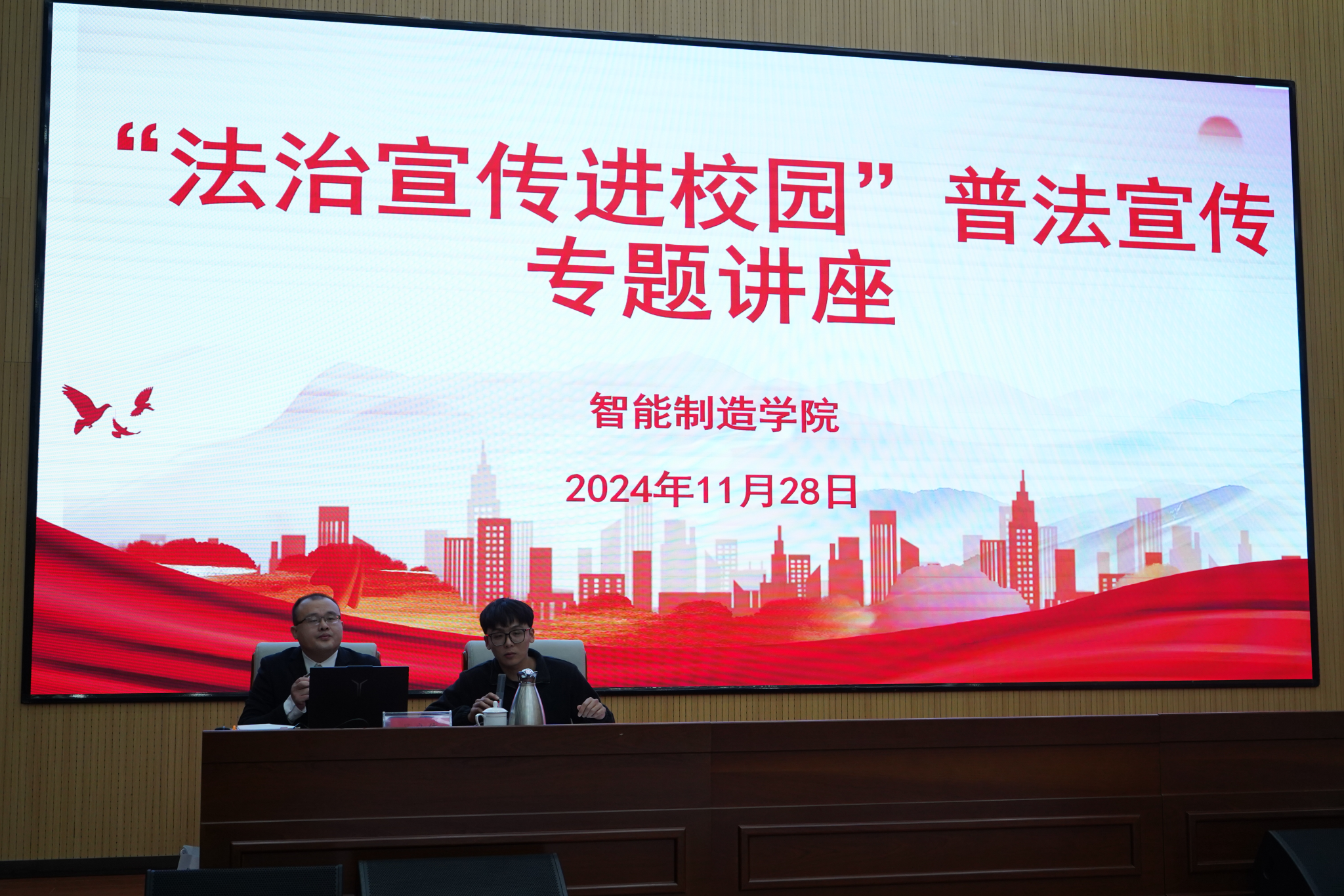 为进一步培养学生法治观念,丰富法律法规知识,养成遵纪守法、遵守校规校纪的良好习惯,提升我院学生自我保护能力。11月28日,智能制造学院开展“法治宣传进校园”普法宣传教育讲座,邀请山东普新律师事务所专职律师吴良伟进行普法教育宣传,智能制造学院学生代表共150余人参加。活动由智能制造学院学工组长谢兵锐主持。