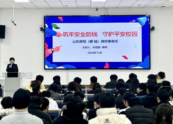 为进一步增强大学生的法律意识和法治观念,加强法制安全教育,提高学生学法、守法的意识,在第十一个国家宪法日来临之际,11月29日,人工智能与网络安全学院邀请山东舜翔(聊城)律师事务所副主任孙丽茹来我院开展法制教育讲座。人工智能与网络安全学院辅导员、班主任、学生代表共200余人参加活动。
