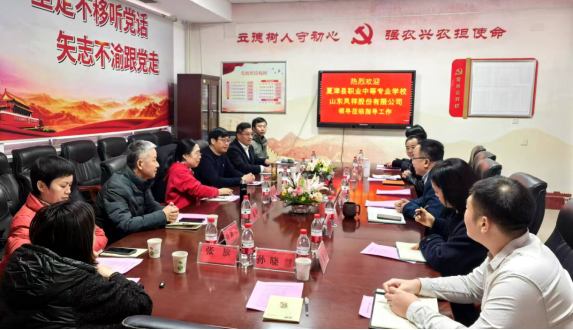 近日,夏津县职业中等专业学校校长于生祥一行5人、凤祥股份有限公司养殖事业部人力资源总监孙希珍一行3人来校,围绕“育人对接用人”与智慧农业学院洽谈合作。智慧农业学院院长王闯参加洽谈会。