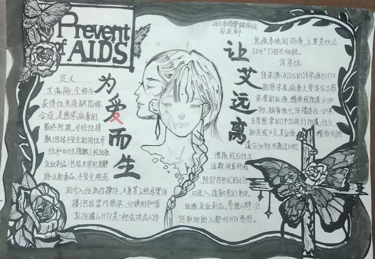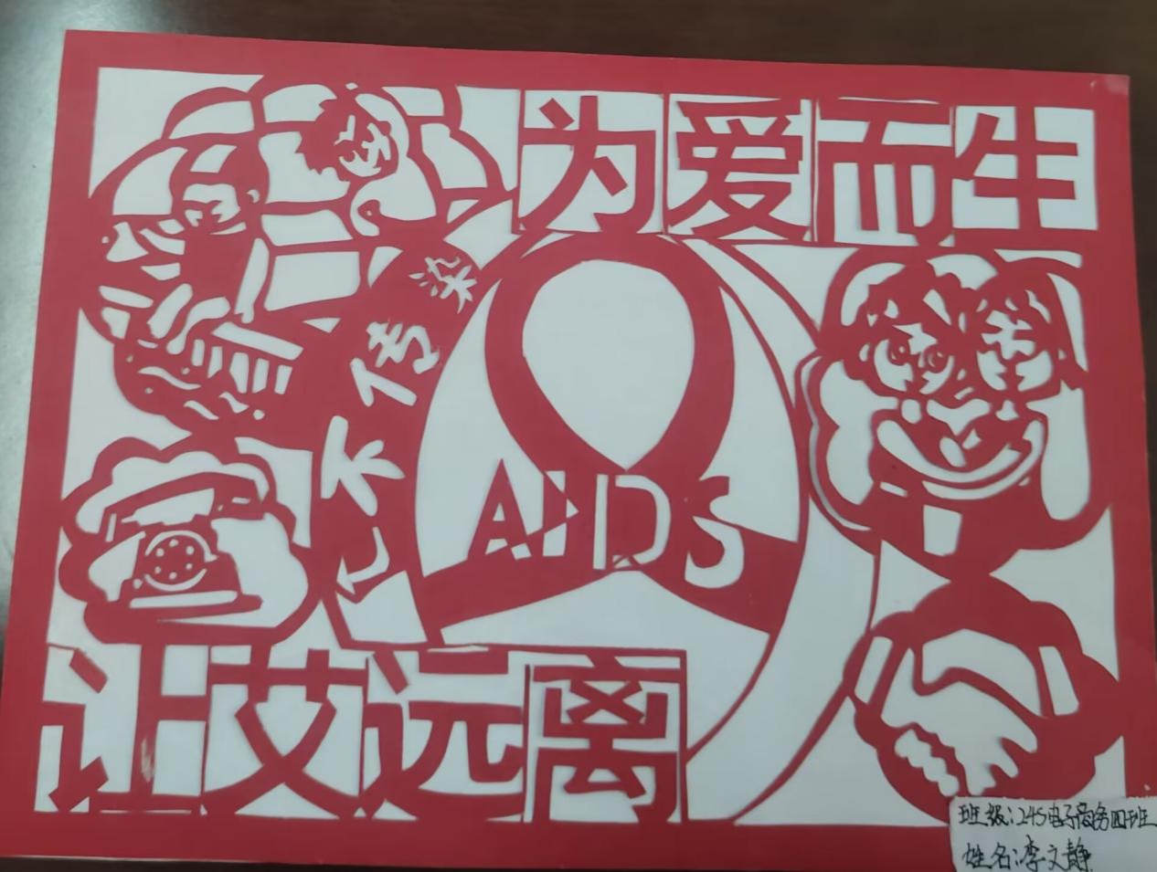 本次活动以剪纸、手抄报为主要形式,同学们在充分的准备下展现了最精彩的作品,增强了同学们对艾滋病的防范意识,消除了对艾滋病患者的误解与歧视。