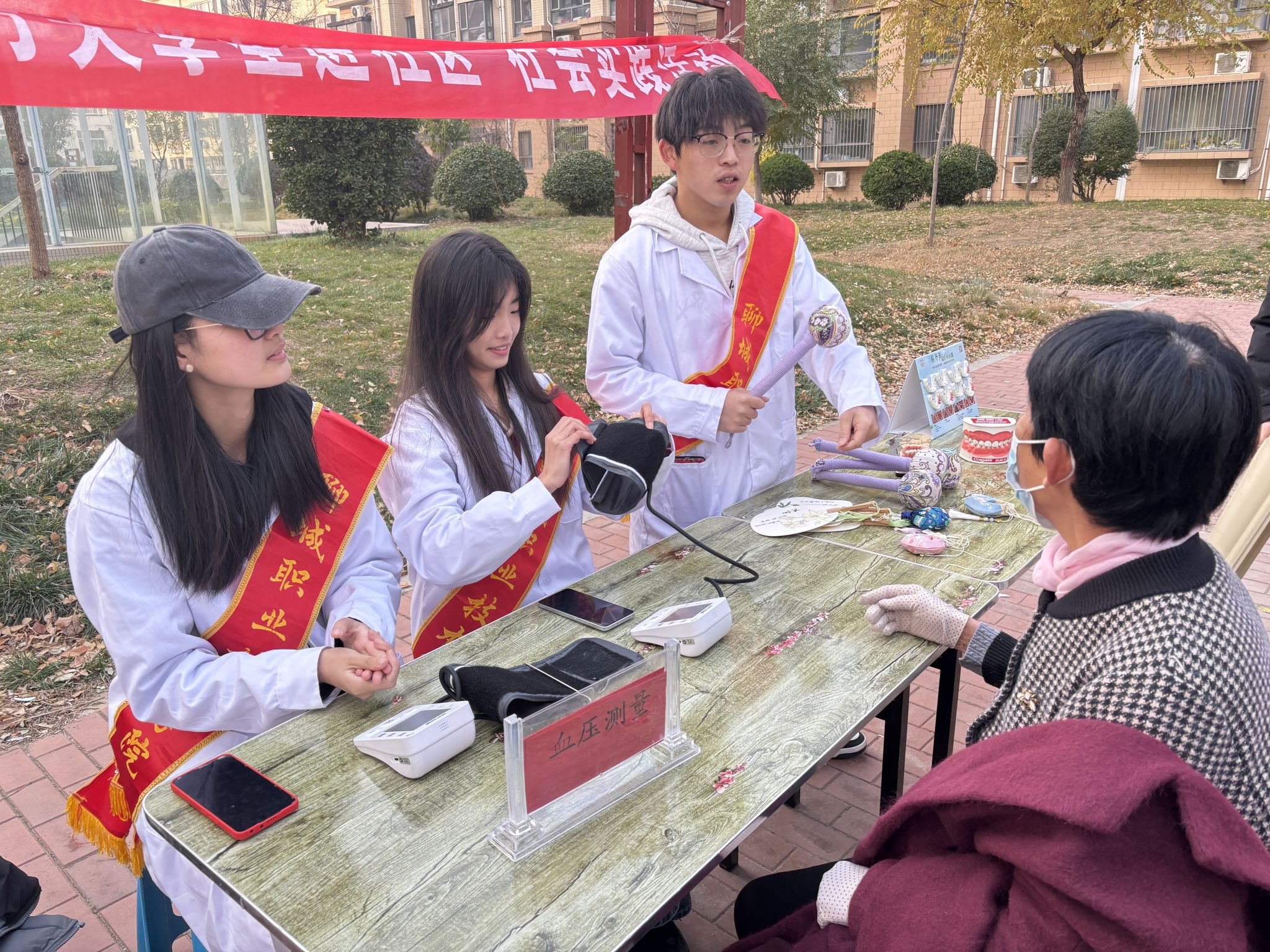 活动现场,志愿者用通俗易懂的语言为居民分析健康状况,普及降压药相关知识,讲解保持口腔健康的重要性,并用模型直观演示正确刷牙法,分享护齿小妙招,教授牙齿保健操。与此同时,传统中医药文化宣传也别出心裁。志愿者将艾草锤、中药香囊、中医药文化团扇有序陈列,在为居民讲解中药选材、功效用法的过程中,传递出中医药文化的独特魅力和浓厚底蕴。