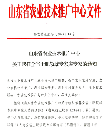 近日,山东省农技推广中心发布《关于聘任全省土肥领域专家库专家的通知》(鲁农技土肥[2024]14号),公布了全省土肥领域专家库专家名单。聊城职业技术学院智慧农业学院副教授郭步庆入选,受聘为全省土肥领域专家库专家。