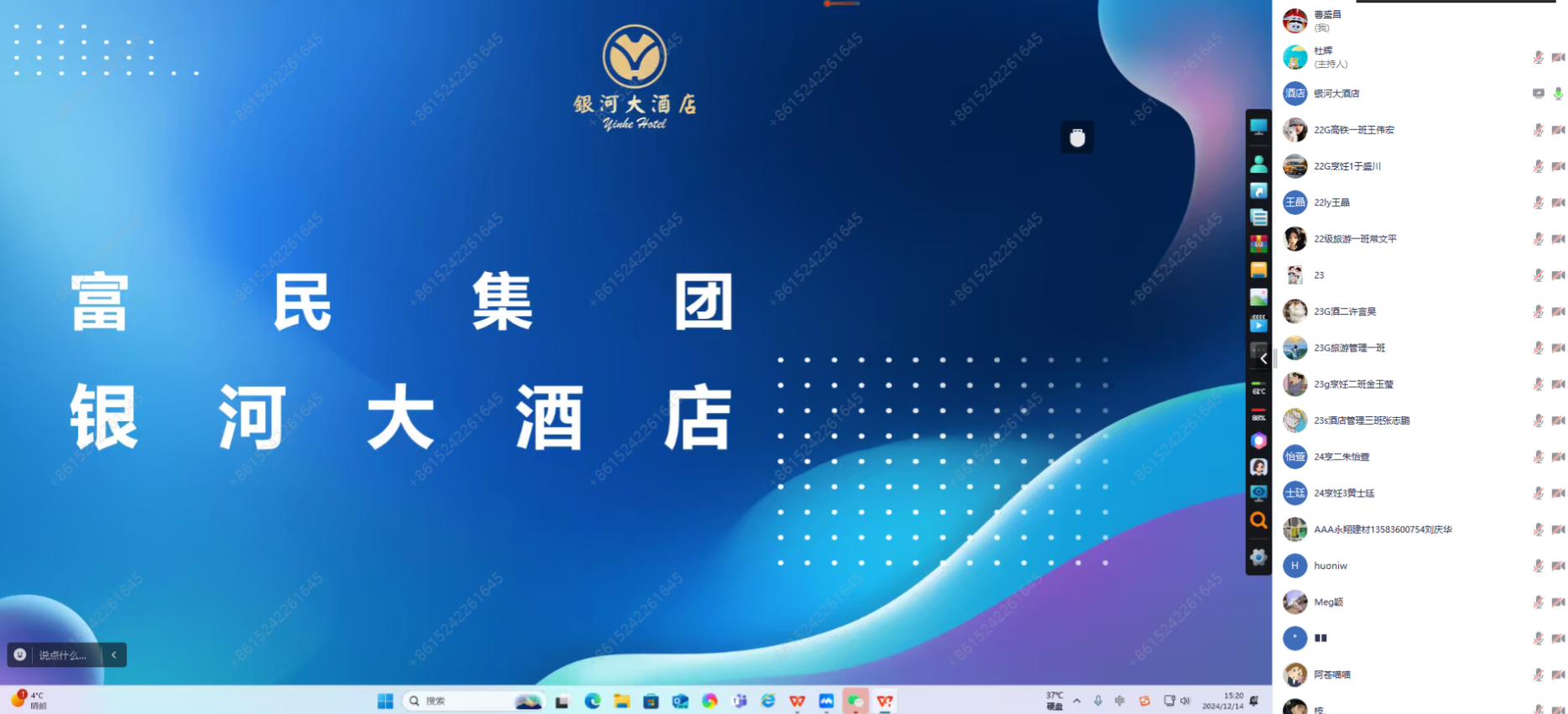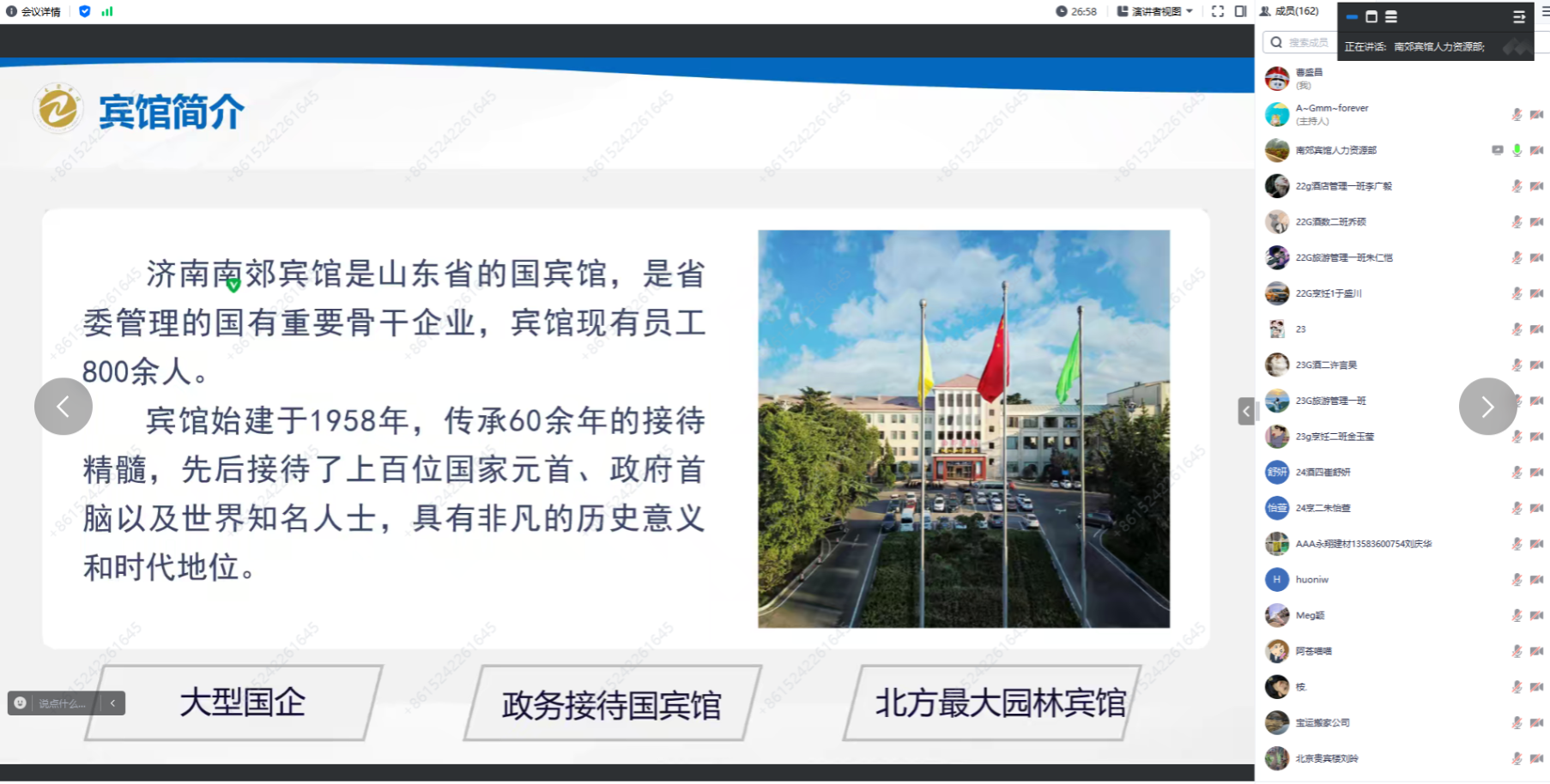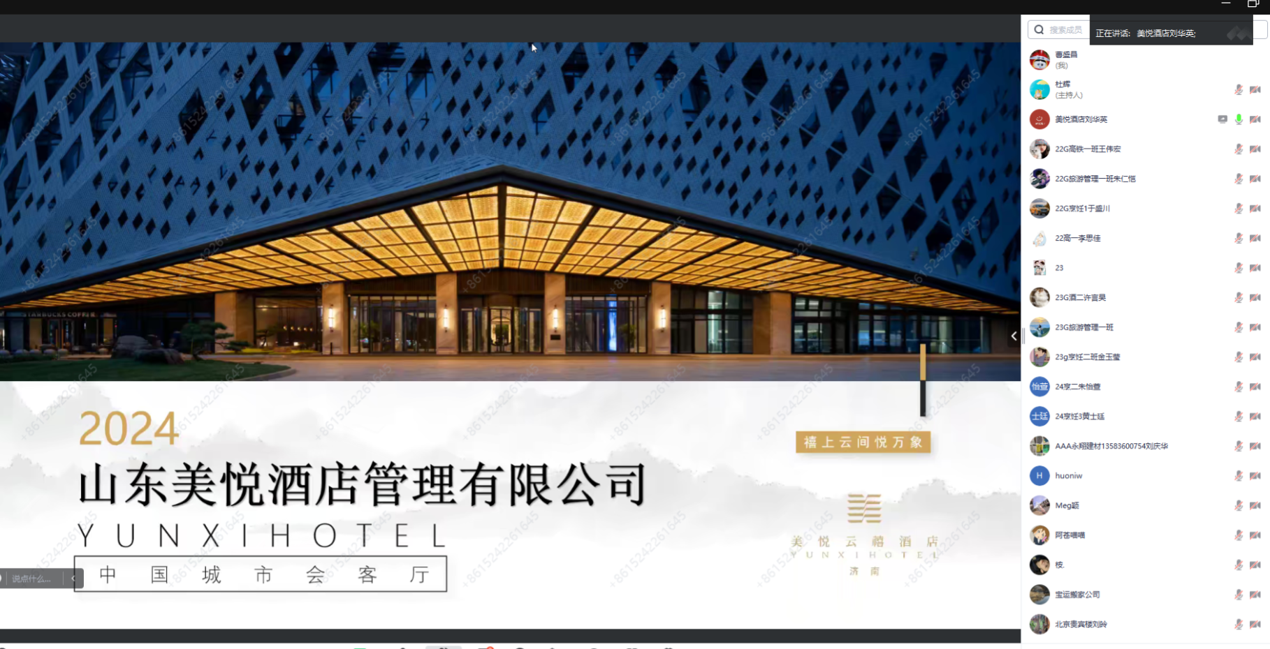 为全面做好文旅学院2025届毕业生实习就业工作,贯彻落实高质量就业要求,引导毕业生明晰就业形势、熟悉就业政策、把握就业机会,12月14日,文旅学院邀请济南南郊宾馆、山东美悦酒店管理有限公司、天津银河大酒店有限公司、华强方特(济南)旅游发展有限公司、北京贵宾楼饭店有限公司、青岛铭家尚品餐饮管理有限公司等企业负责人为学院2025届毕业生召开实习就业线上宣讲会。文旅学院党总支书记、副院长王凯颖,团总支副书记杜辉,学校学生工作部就业科科长奚源,2025届毕业生辅导员及2025届全体毕业生、家长代表参与线上宣讲会。