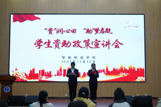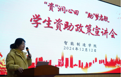 为深入贯彻落实党的二十大精神,落实立德树人根本任务,引导学生全面了解国家、学校的各项资助政策,增强学生的感恩、奉献意识和责任担当,鼓励学生争做有理想、敢担当、能吃苦、肯奋斗的新时代好青年,奋力书写中国式现代化挺膺担当的青春篇章,近日,学校学生工作部、智能制造学院举办“‘资’润心田,‘助’梦启航”学生资助政策宣讲会,学校学生资助管理中心负责人袁晶,智能制造学院团总支副书记刘丽敏,辅导员于敏,班主任代表、学生代表等150余人参加活动。