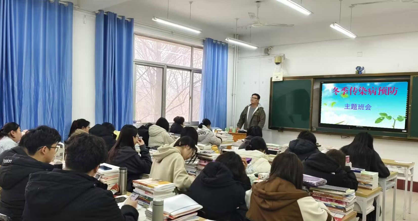 各班通过召开“预防疾病,你我同行”主题班会,对流感、结核病、诺如病毒、水痘等常见传染病的表现症状、危害性、传染源、传播途径、和科学预防措施等进行了细致地了解。同时,各班发放“传染病预防小贴士”,引导学生注意个人卫生和防护,勤洗手、吃熟食、常通风、晒衣被,并要求大家平时要注意坚持体育锻炼,保持平衡膳食,合理休息,增强免疫力。