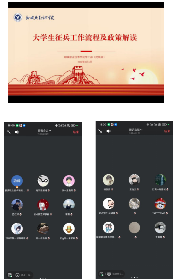 为了做好2025年上半年应征入伍相关工作,让更多有志青年深入了解当前应征入伍相关政策,熟悉报名流程,进一步推动2025届毕业生就业工作落到实处,12月17日,文旅学院召开应征入伍政策线上宣讲活动。文旅学院团总支曹盛昌老师、负责征兵工作的辅导员、部分2025届应届毕业生代表参加会议。