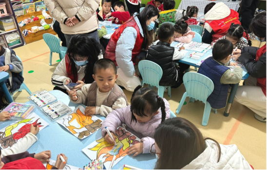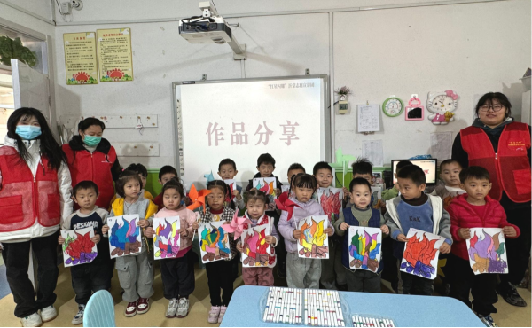 宣讲团成员还组织了特别的互动环节——“点燃你心中的沂蒙之火”。在志愿者的引导下,孩子们拿起画笔,为提前给他们准备好的“沂蒙之火”描绘出他们心中的色彩。画完后,小朋友们争先恐后的展示自己的“沂蒙之火”,并讲解他们涂不同颜色的原因,表达对沂蒙精神的理解与传承。志愿者们向孩子们赠送了提前手工制作的礼品小风车,寓意着希望孩子们能够像风车一样,在红色文化的熏陶下,茁壮成长,勇往直前。
