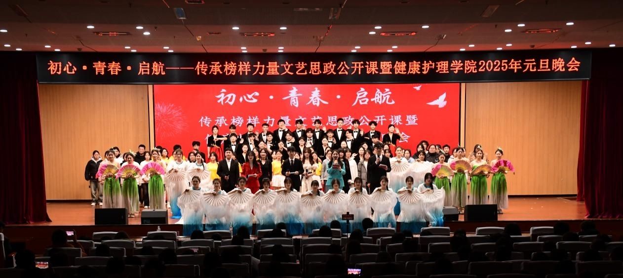榜样,是照亮前路的灯塔,为我们指引方向;榜样,是催人奋进的号角,激励我们突破自我,追求卓越。为激发新时代大学生担当奉献、追求卓越的精神风貌,营造校园文化氛围,提升学院的凝聚力和向心力,在2025年元旦即将到来之际,健康护理学院在北校区图书馆报告厅举办“初心 青春 启航”——传承榜样力量文艺思政公开课暨2025年元旦晚会。