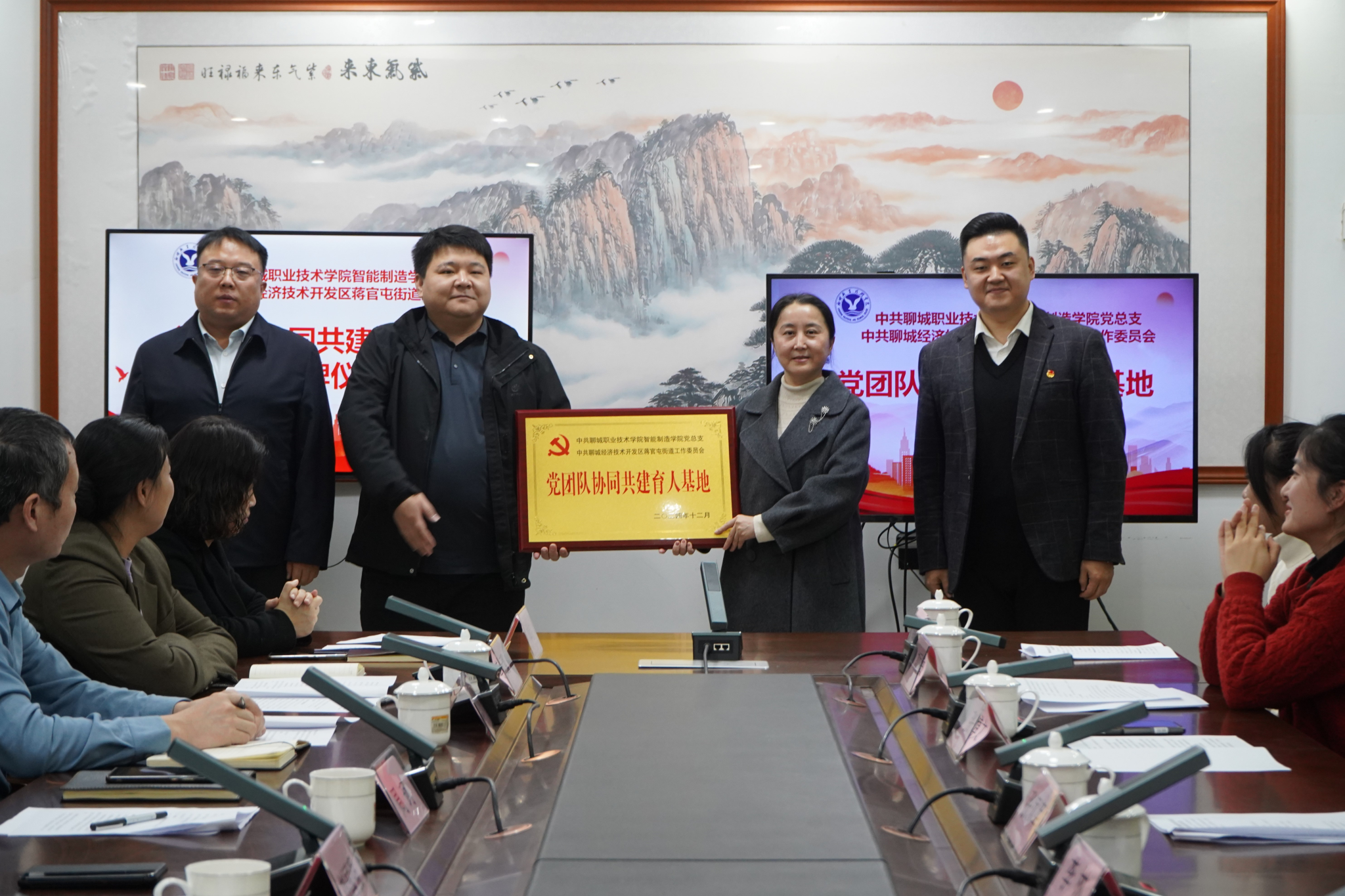 为进一步深化校地联动、双向赋能,发挥党建带团建,共建促发展的作用,12月24日,聊城职业技术学院智能制造学院与聊城经济技术开发区、蒋官屯街道联合开展组织联建。开发区党群工作部机关党委副书记周珂,蒋官屯街道党工委书记刘国强,蒋官屯街道党工委副书记、办事处主任鲁天,蒋官屯街道党工委副书记吴迪,蒋官屯街道党工委委员、组织委员杨倩,蒋官屯街道党工委委员、宣传委员李元馨,聊城职业技术学院智能制造学院党总支书记、院长张凤军,校学工部副部长李林,校团委书记张博文,智能制造学院党总支副书记任伟,团总支副书记刘丽敏,辅导员郝文晓、徐红岩、袁建正,教师代表孙庆乐,党务工作者荣小语,智能制造学院三十余名学生代表参加活动。