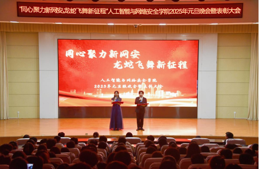 岁月轮回,新元再启。12月29日,人工智能与网络安全学院“同心聚力新网安,龙蛇飞舞新征程”2025年元旦联欢晚会暨表彰大会在南校区图书馆举行。人工智能与网络安全学院党总支副书记魏伟,团总支书记王哲、人工智能与网络安全学院辅导员及学生代表共计300余人参加。