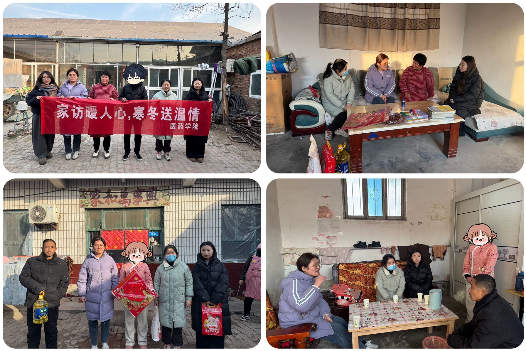 为进一步把党和国家对家庭经济困难学生的关怀落实落细,帮助家庭经济困难学生温暖过冬,1月14-15日,医药学院开展“寒冬温情,暖心走访”活动。团总支副书记林静秋和辅导员班主任代表前往东昌府区闫寺、郑家和莘县等地,走访慰问家庭经济困难学生。