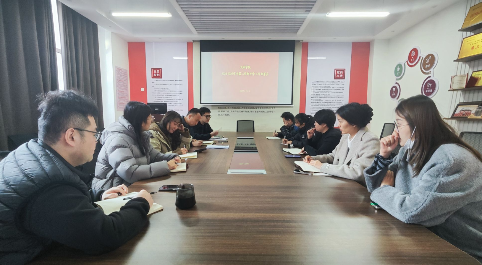 2月14日,文旅学院组织召开新学期学生工作会议,会议传达2025年全省教育工作会议和学校新学期开学准备工作会议精神,部署学院春季开学学生工作。学院全体辅导员、班主任老师参加会议。