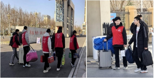 学生返校期间,学院招募培训了20余名志愿者组成志愿服务队,在校门口迎接同学们的到来,帮助搬运大件行李。