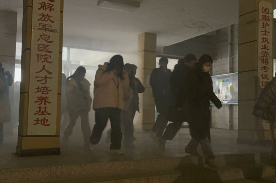 晚上19时40分,团总支副书记张翠翠宣布演练开始。在模拟火灾烟雾点燃后,火警警报迅速拉响,23、24级师生在辅导员老师、学生干部的指引下,用湿毛巾捂住口鼻,弯腰低头快速有序地按照既定的逃生路线安全撤离到教学楼外空旷位置。整个疏散过程紧张而有序,从警报声响起到最后一名学生撤离到指定地点,仅用时2分15秒。