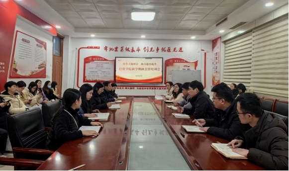为进一步加强班主任队伍建设,提升德育工作水平,2月16日,经贸学院开展 “聚焦主题班会 助力德育提升”新学期班主任培训会。校学生工作部副部长李林、经贸学院党总支副书记曹先鹏、团总支副书记苏飞、全体辅导员和班主任齐聚一堂,共同学习交流,为新学期的德育工作充电赋能。