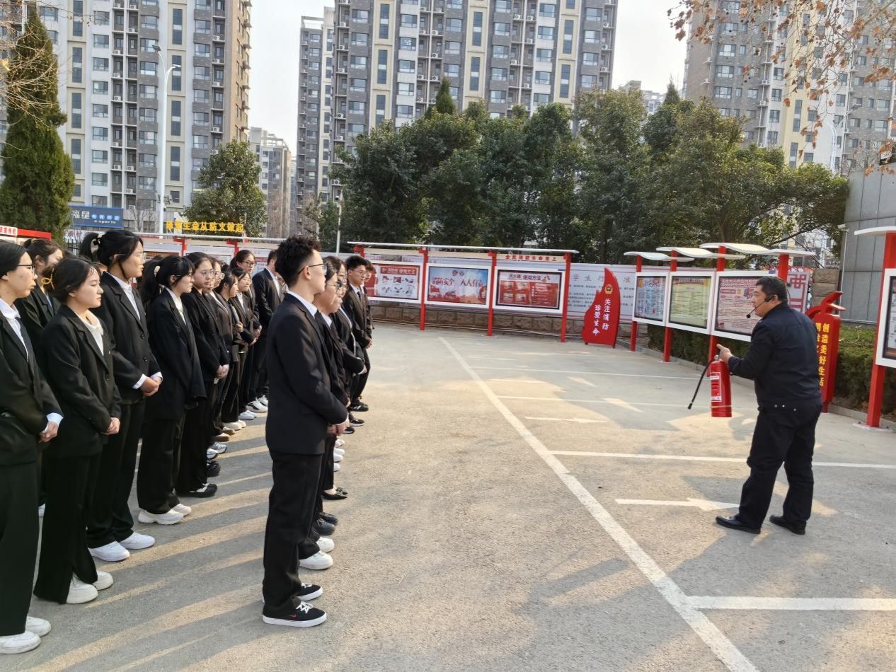 在消防安全专题培训中,校保卫处周涛老师结合高校典型火灾案例,以“平安校园守护者”为主题,通过实物教学与情景模拟等方式,对消防设施操作、初期火情处置、疏散引导技巧、“三要三不要”报警原则等进行详细讲解,鼓励青马学员做好安全隐患的“侦察兵”、应急处突的“先遣队”和安全教育的“宣传员”。