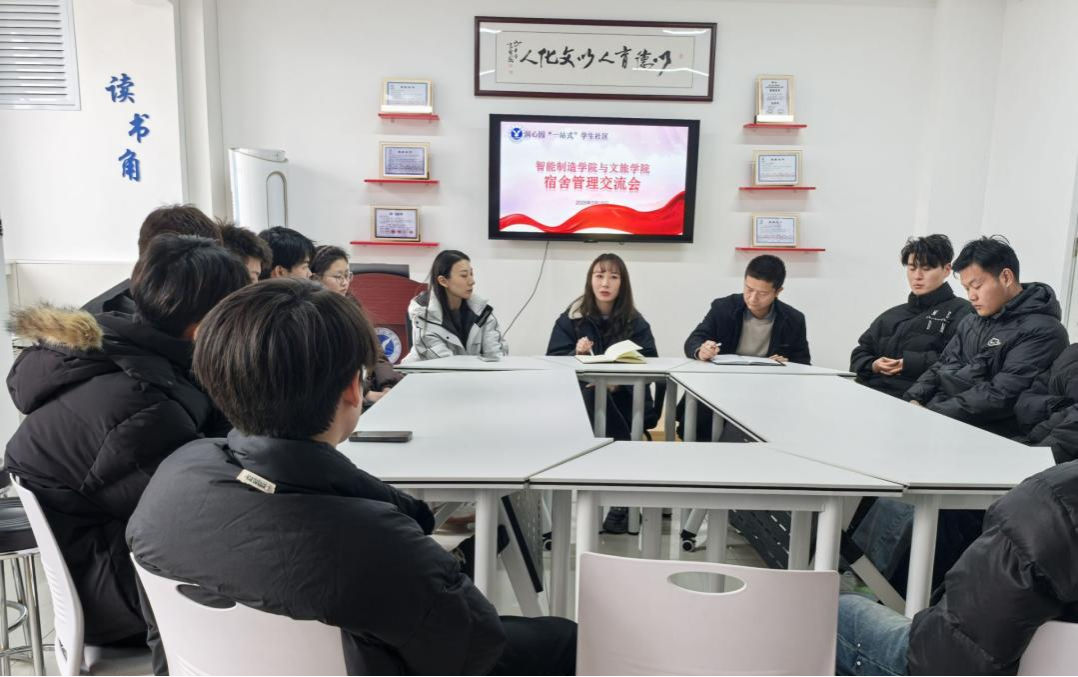 为引导学生尽快适应新学期校园生活,做好宿舍管理工作,营造健康整洁的学习生活环境,2月19日,智能制造学院联合文旅学院组织开展2025年春季学期“宿舍管理心连心”交流活动,智能制造学院辅导员徐同、郝文晓,文旅学院辅导员郭坦,宿管会学生干部及相关学生代表参加。