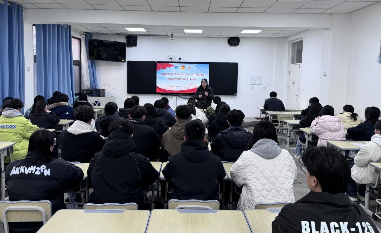 为了不断提高青年学生骨干的思想政治素质、理论政策水平和实践创新能力,2月20日,健康护理学院举行第二学期“青马工程”培训班开班仪式暨第一课。学院团总支副书记张翠翠、杨清刚,辅导员及50余名学生干部参加活动。