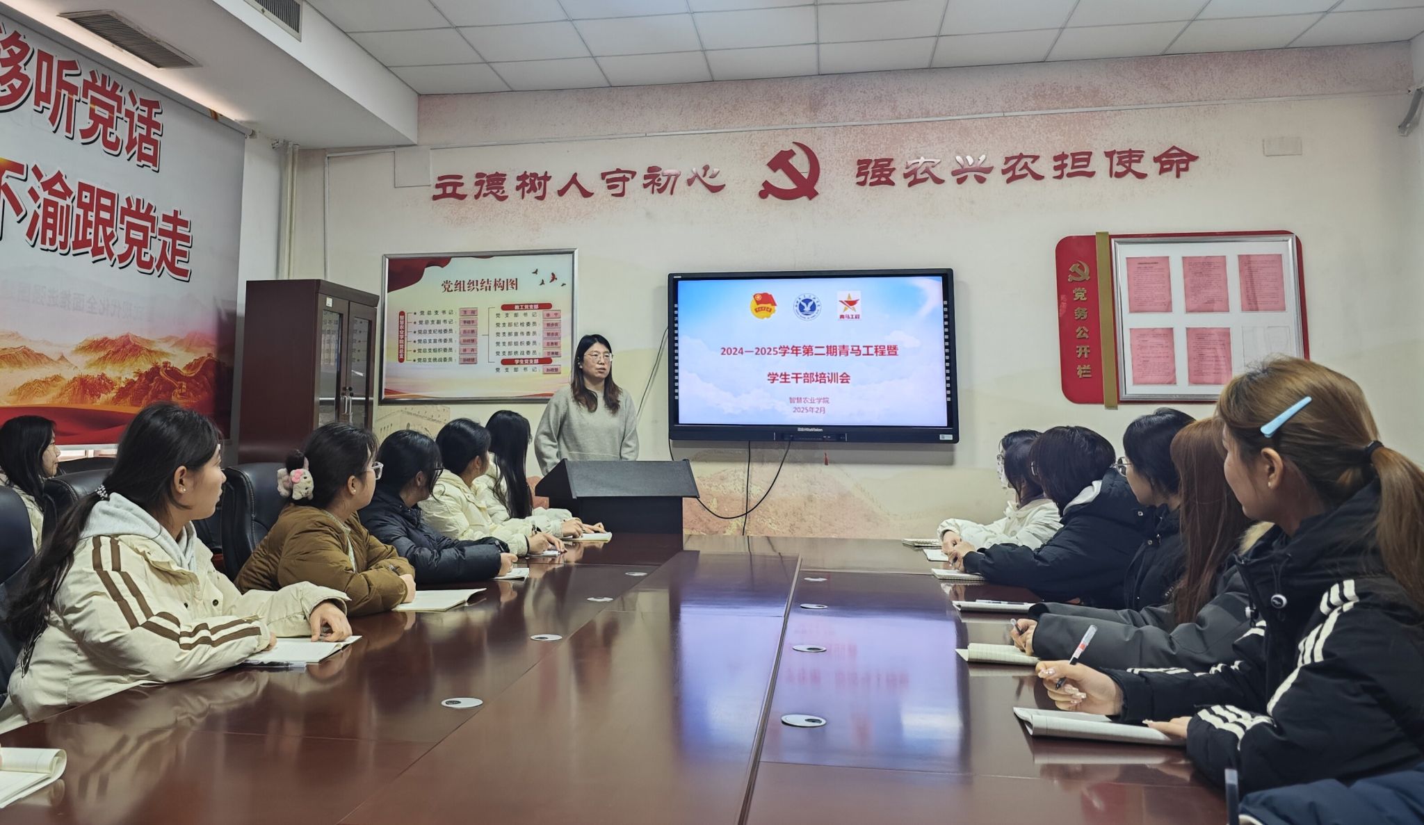为深入贯彻落实习近平总书记关于青年工作的重要思想,培养新时代青年的马克思主义理论素养,引导青年学生进一步坚定跟党走的理想信念。2月28日,智慧农业学院举行第二学期“青马工程”培训班开班仪式暨学生骨干培训。学院团总支副书记孙晓慧、辅导员及学生干部代表参加。