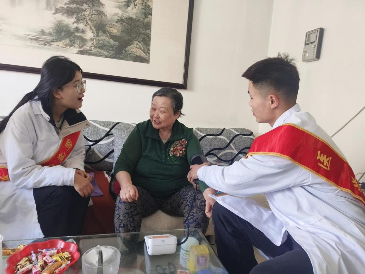 医药学院青年志愿者走进阿尔卡迪亚社区,为老党员开展“上门入户送健康”活动。大家在专业教师指导下,为数十名老党员测量血压、血糖,提供康复按摩服务,并建立健康档案。“孩子们手法专业,讲得也清楚,我这老寒腿舒服多了!”一位老党员连连称赞。活动让老党员感受到温暖与关怀,也让同学们在实践中进一步深化了“健康所系 性命相托”的医者信念。