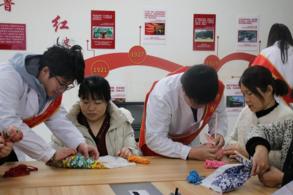 志愿者还走进阳光社区开展“艾草锤手作+中医养生”特色志愿服务。师生带领社区居民制作艾草锤,并结合中医穴位知识讲解日常保健技巧。“艾草锤敲打足三里,能健脾养胃;轻叩肩井穴,可缓解疲劳……”志愿者们手把手教学,居民们兴致盎然,在欢声笑语中,传统医学智慧与现代志愿服务精神实现深度融合。“没想到小小艾草锤藏着大学问,这样的服务贴心又实用!”社区居民王阿姨感慨说。