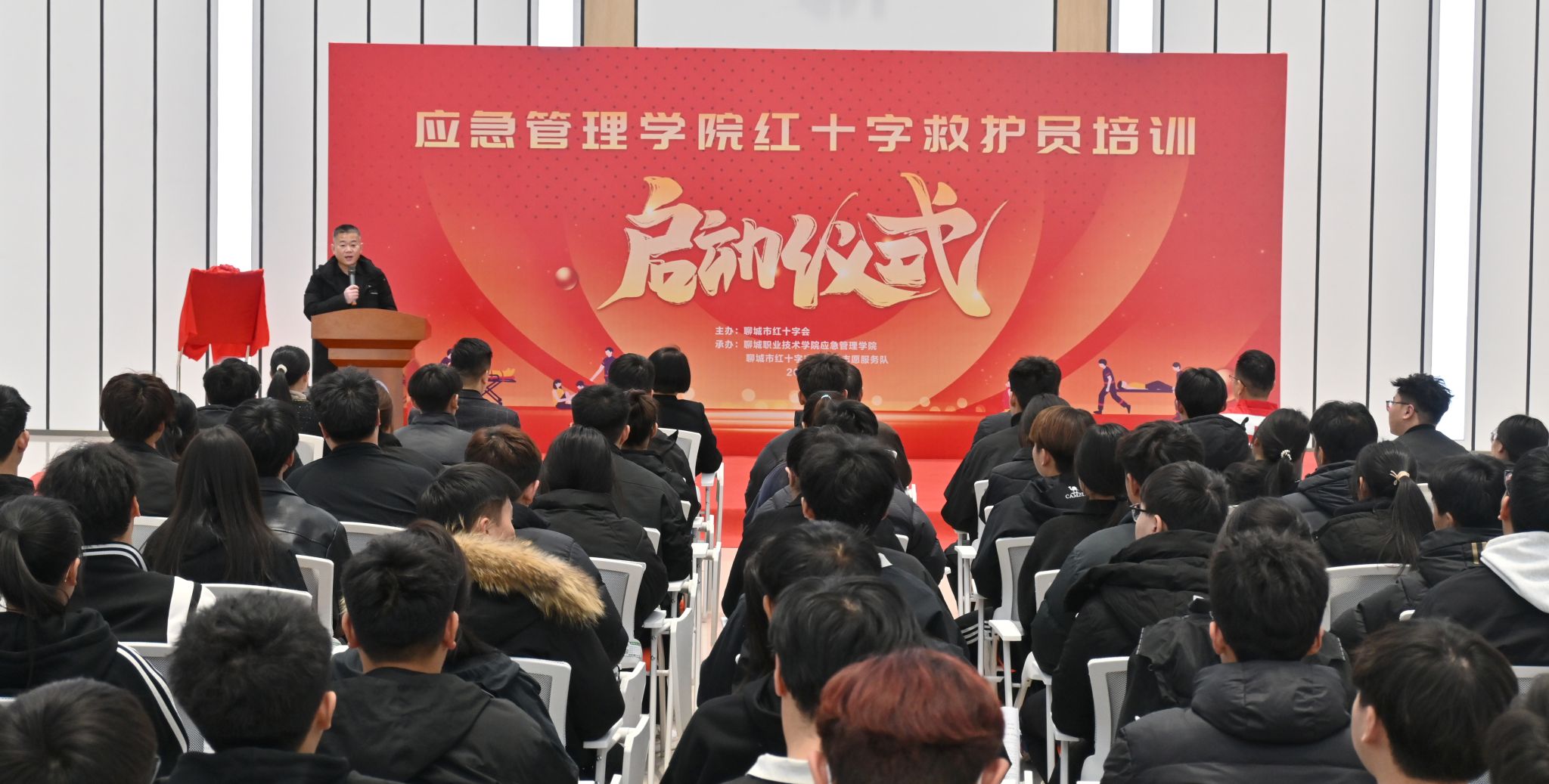 3月6日,应急管理学院红十字救护员培训启动仪式在北校区举行。聊城市红十字会会长张吉文,聊城市红十字会应急救护志愿服务队队长何振岩、白雷震,应急管理学院院长郭玉娟,校团委书记张博文出席活动。应急管理学院党总支书记张延栋主持活动。