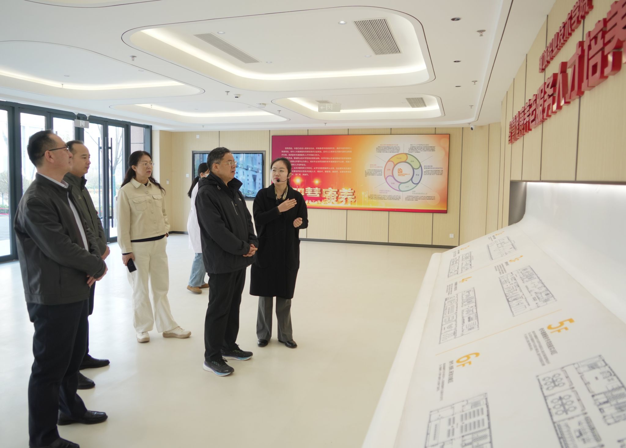 吴黎明先后到智慧健康养老服务与管理人才培养实训基地等实地调研,通过现场查看和听取汇报,详细了解学校实训基地建设和老年健康专业群的人才培养情况。座谈会上,吴黎明对我校老年健康服务专业群的建设成效表示肯定,对服务养老产业、专业方向调整和资格证书培训等提出了指导性建议。双方还围绕如何进一步精准服务山东省医养健康产业进行了深入的探讨和交流。