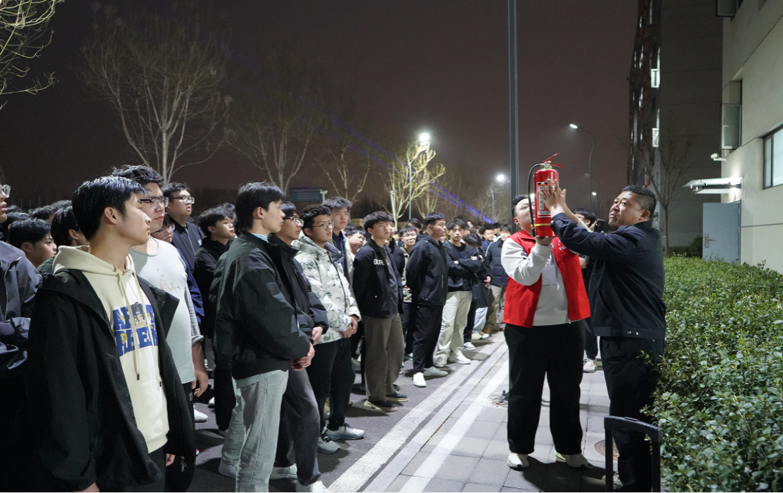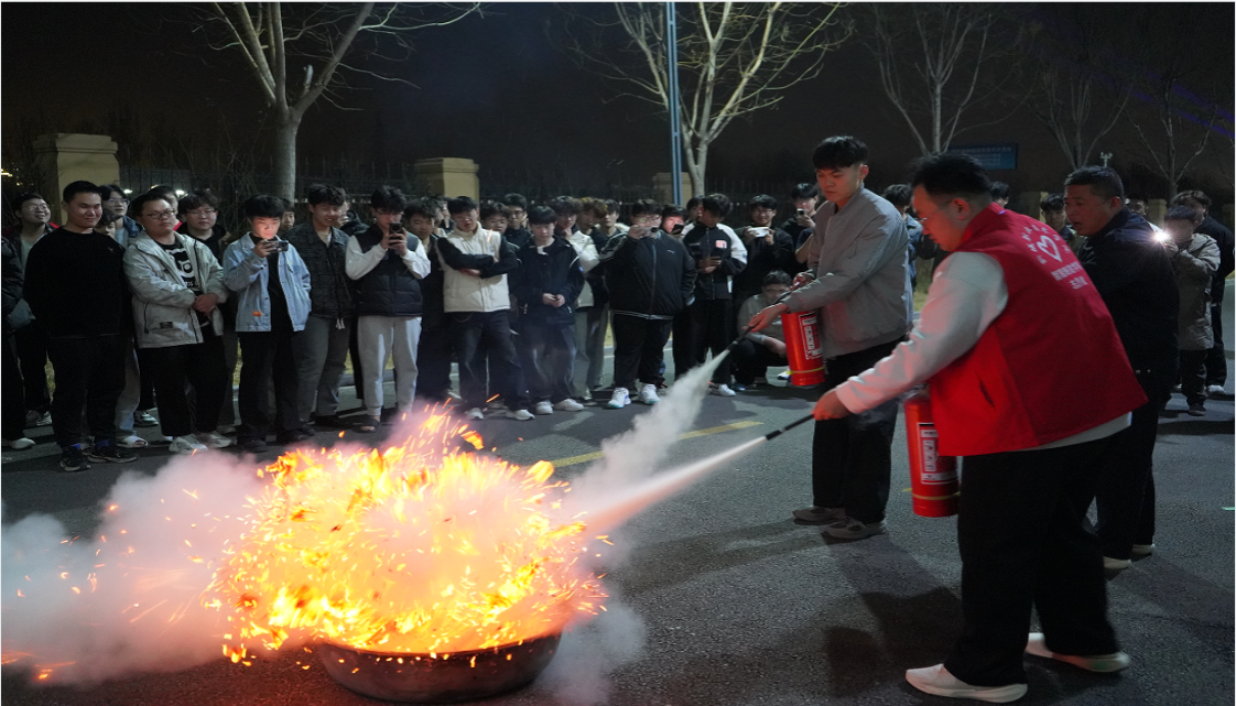 演练过程中,周涛对消防常识、灭火器的使用进行了具体讲解,强调在使用灭火器的过程中要一手提灭火器,一手打开保险栓,然后对准火焰根部进行喷射,并指导同学们进行实践操作。