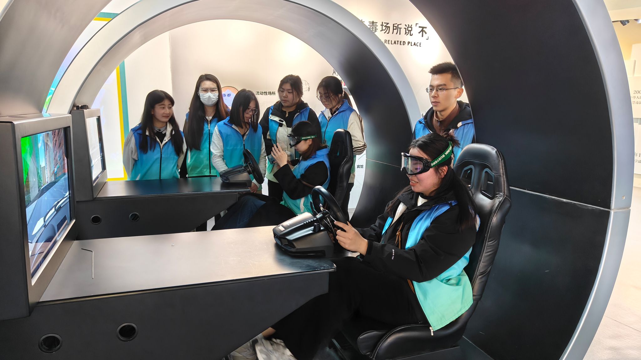 在展览馆的VR互动区,同学们戴上虚拟现实设备,亲历“毒驾”场景,通过AI人脸模拟系统感受“吸毒面容变化”,不少学生直呼“触目惊心”。讲解员还结合新型毒品模型,揭秘“奶茶粉”“卡通贴纸”等伪装毒品,提醒同学们警惕社交场合中的隐蔽陷阱。