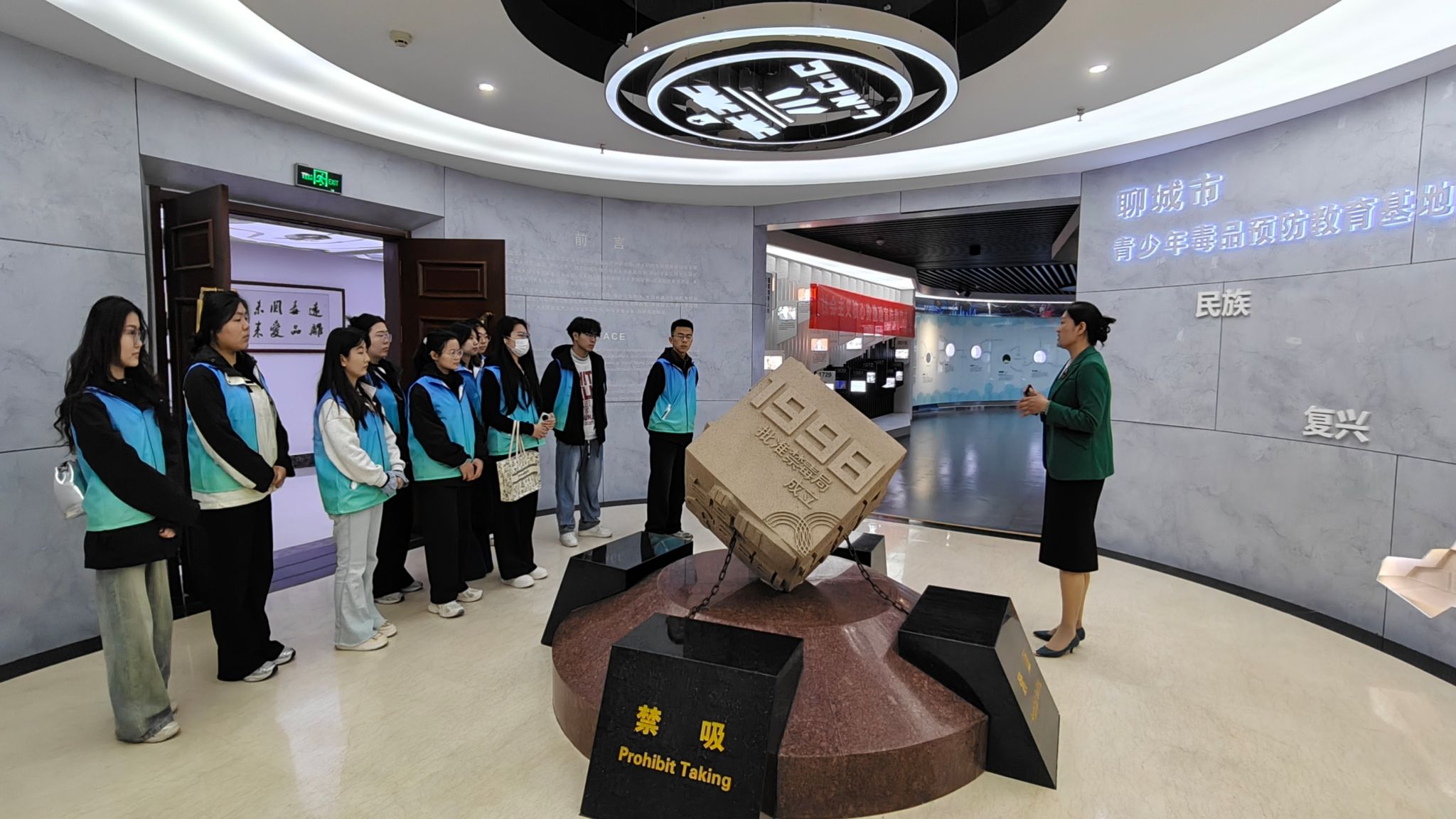 在讲解员带领下,同学们了解了我国的禁毒史、毒品的种类、来源和传播途径以及聊城地区禁毒工作开展情况等。