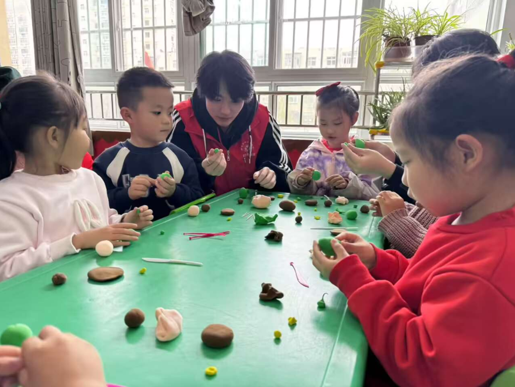 志愿者们还结合自身在课堂上学到的传统面塑技艺,带领小朋友们亲手塑造雷锋叔叔的形象。孩子们兴致勃勃地参与到制作过程中,充分发挥自己的想象力,用小手捏出了一个个充满童趣的雷锋形象。活动现场充满了欢声笑语,孩子们在动手实践中不仅感受到了非遗文化的魅力,还加深了对雷锋精神的理解。