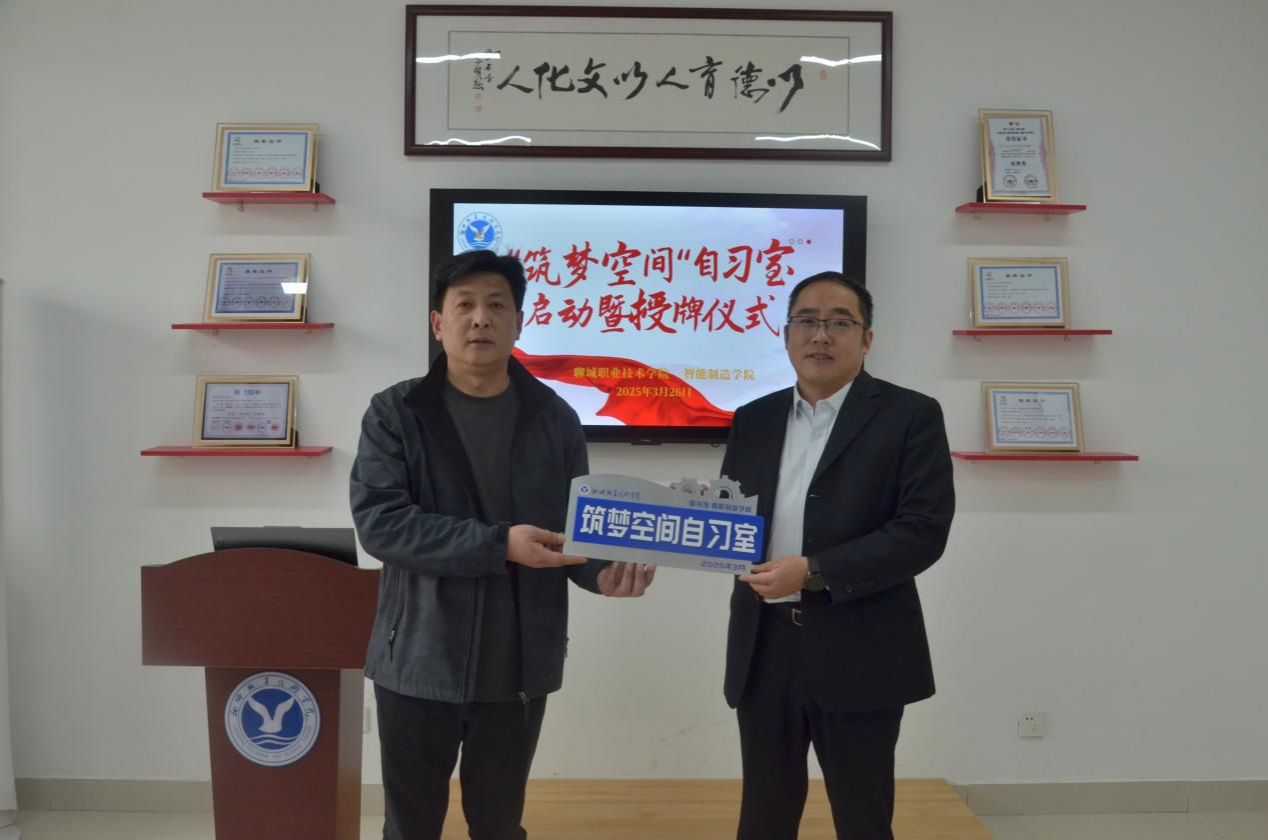 为打造智慧学习新空间,进一步提升学院全方位育人工作水平,3月26日,智能制造学院在润心园“一站式”学生社区举办“筑梦空间”自习室启动暨授牌仪式。聊城职业技术学院学生工作部副部长栾鹏,智能制造学院党总支副书记任伟,团总支副书记刘丽敏,辅导员以及20余名学生代表参加活动。