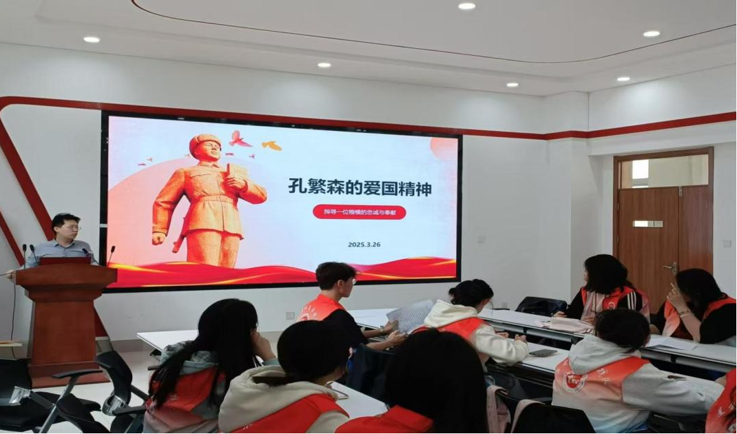 指导教师张旭川以“孔繁森的爱国精神”为题,深情讲述了孔繁森同志两次援藏的历程:在海拔4700米的阿里地区,他顶着零下40℃的严寒推动教育改革,用三年时间让适龄儿童入学率从4%跃升至80%;收养藏族孤儿贡桑德吉,用每月67元工资的绝大部分抚养孩子;三次卖血900毫升换取营养费,直至殉职时口袋仅有8元6角……一个个数字背后,是“一个共产党员爱的最高境界是爱人民”的赤子丹心。