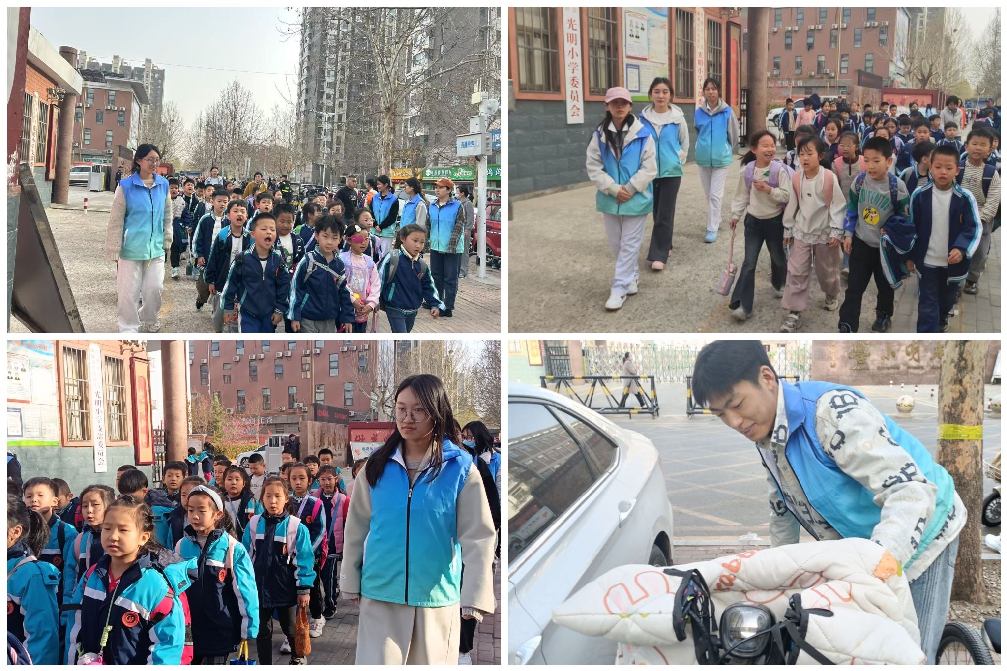 “校门外道路狭窄,学生放学时段经常造成交通拥堵现象。”近日,针对小学生上下学的问题,健康护理学院志愿服务队再次来到光明小学校门口,疏导交通,用真心为小学生撑起温暖的“平安伞”,筑牢交通安全的“防护屏障”。