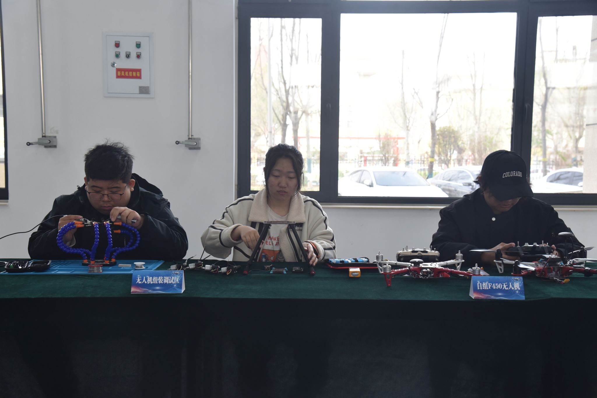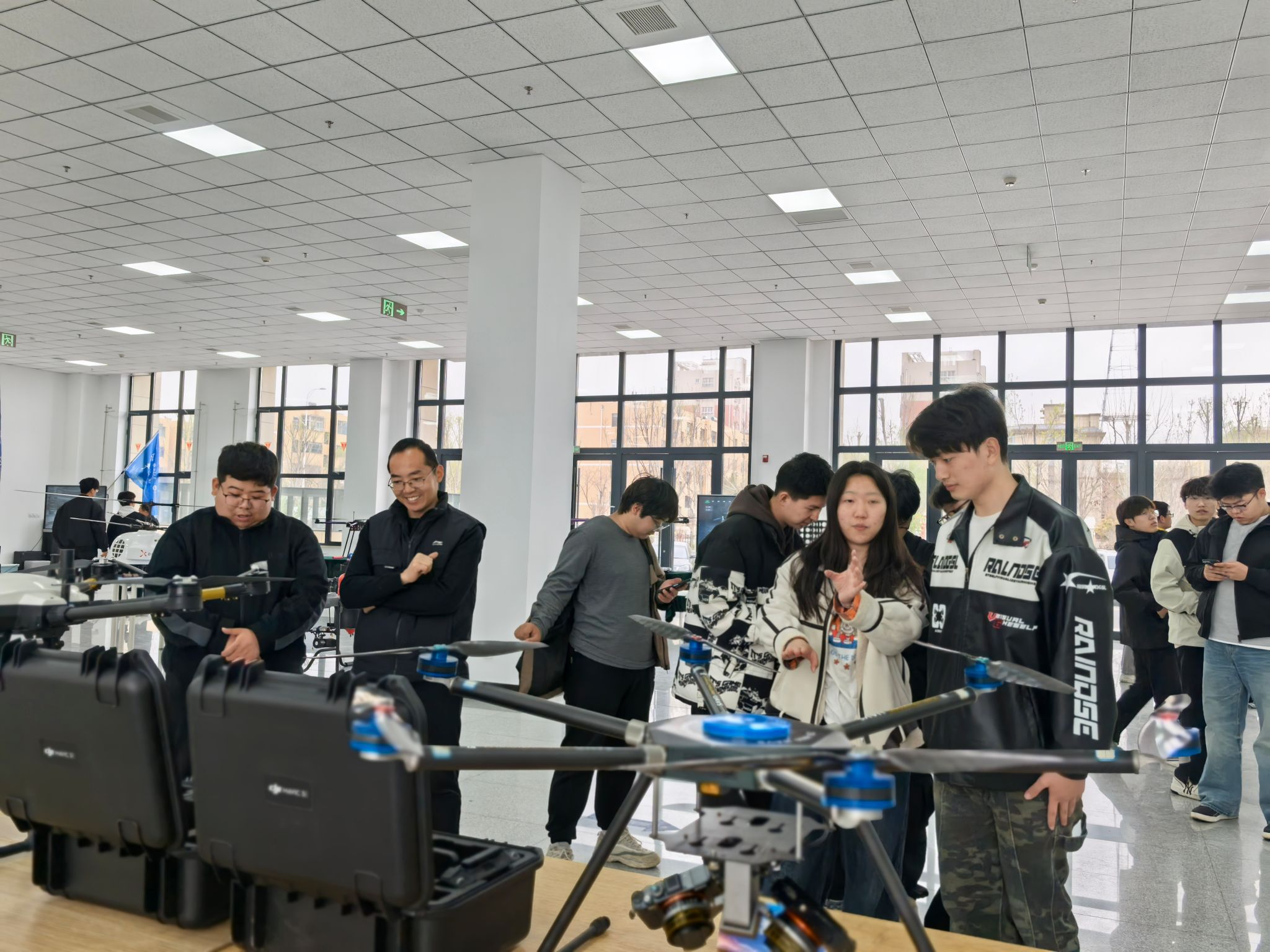 活动现场展示了组装调试设备、数字孪生系统、测绘与植保类无人机等高精度设备。其中,数字孪生系统通过虚拟仿真技术实时映射无人机作业场景,帮助学生直观理解飞行控制与数据处理流程;植保类无人机搭载多光谱传感器与智能喷洒系统,可精准识别病虫害并实现变量施药。这些设备与学院现有无人机测绘、飞行实训室形成互补,构建了“虚实结合、工学一体”的实训体系。