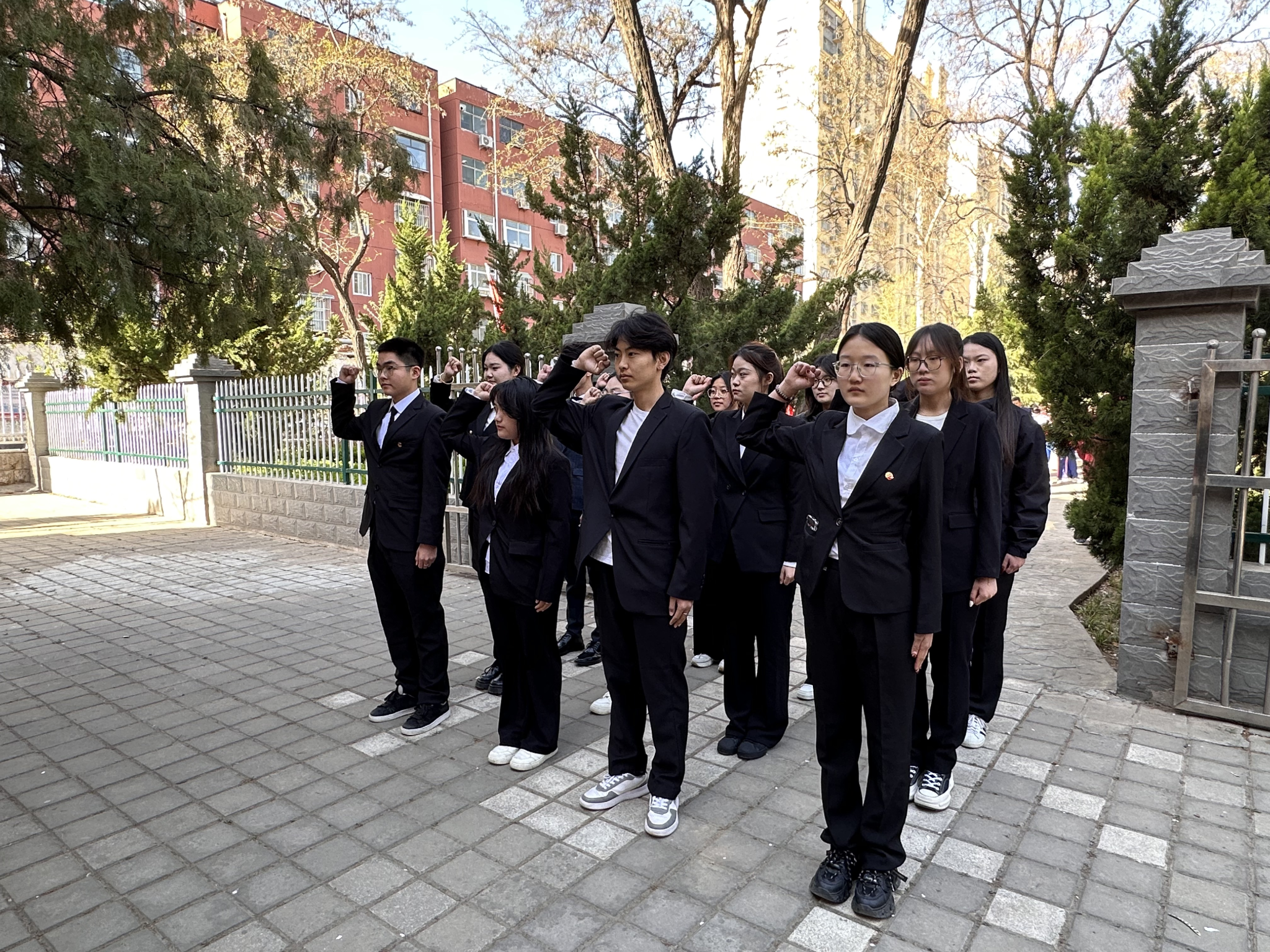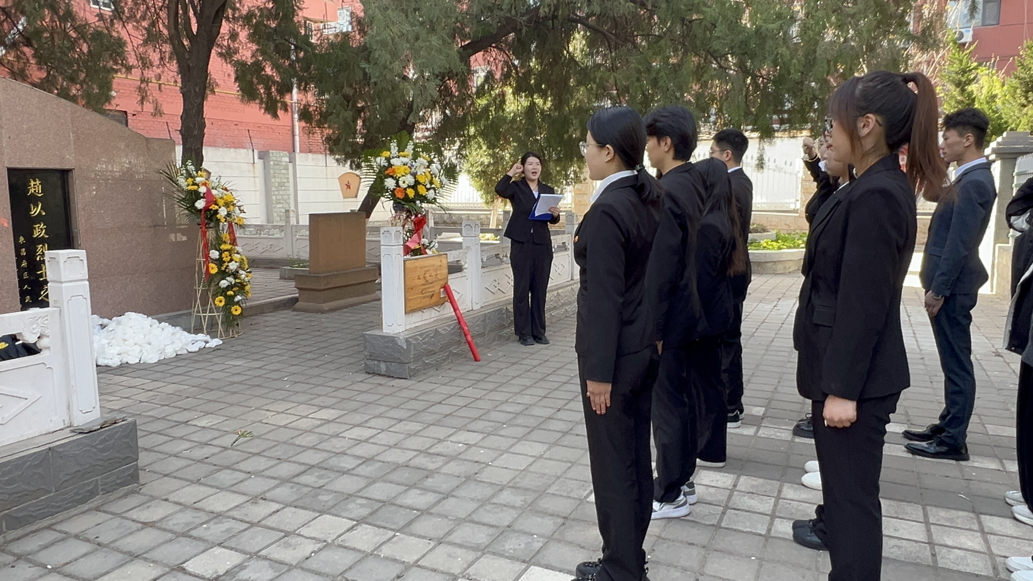 上午,经贸学院师生前往赵以政、赵以堂革命烈士陵园。同学们整齐列队,低头静立,学生干部代表为师生讲述革命先烈的英勇事迹。随后,全体成员手持菊花,怀着沉重的心情,依次有序地走向烈士墓碑。大家认真整理清洁墓碑周边环境,轻轻献上花束,并肃立默哀,向为国家和人民英勇献身的烈士们表达最诚挚的敬意。随后,学生干部带领全体同学进行宣誓。