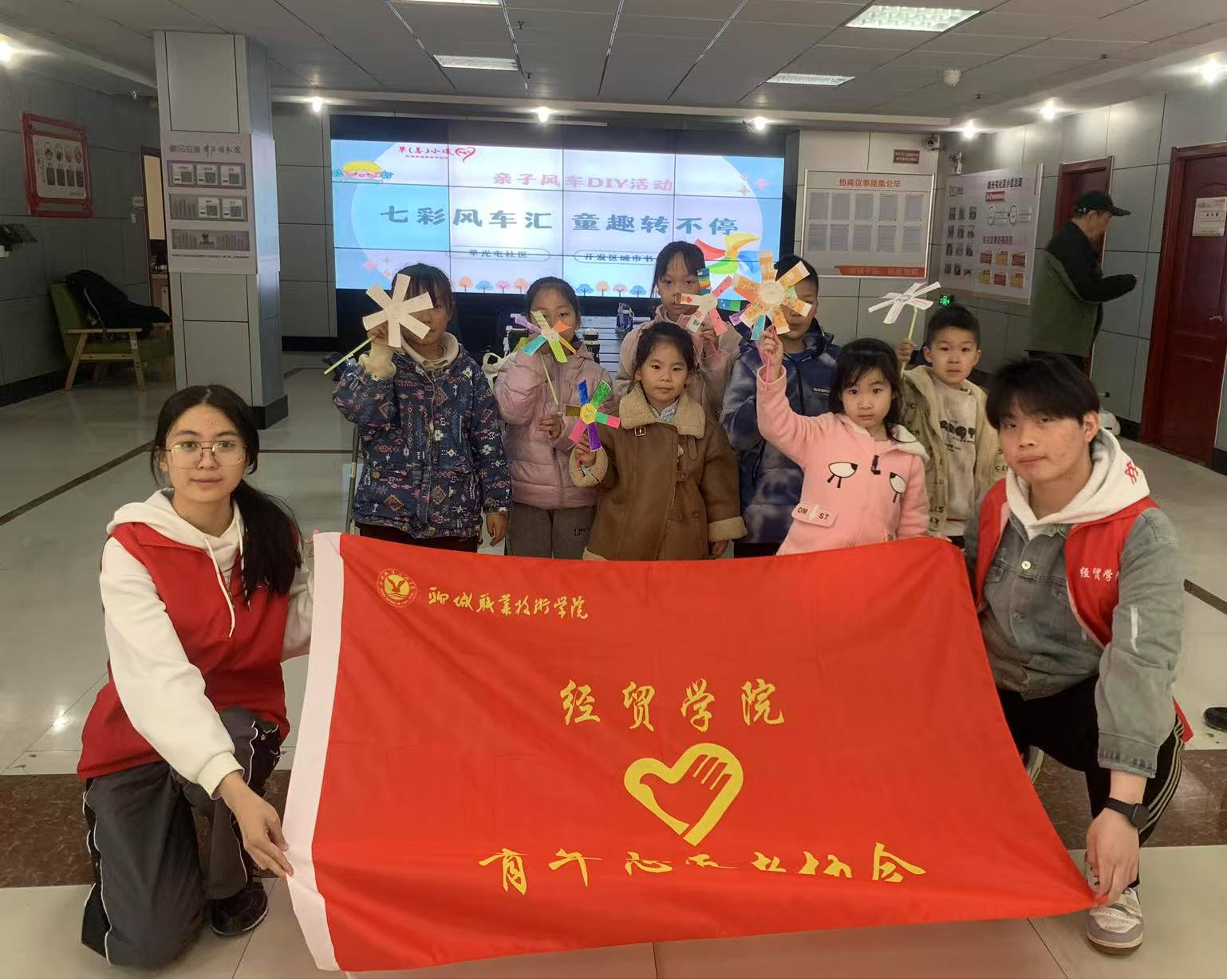 为传承雷锋精神,积极投身“百万大学生进社区”行动,3月31日,经贸学院志愿者走进单光屯社区,开展“七彩风车”手工科普实践活动。