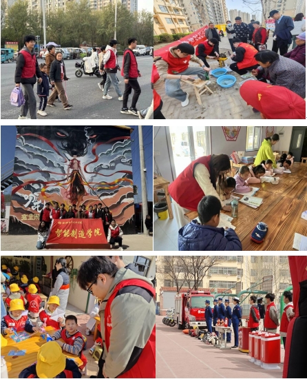 学院聚焦社会需求,围绕传承弘扬雷锋精神、志愿服务精神开展特色服务与实践,实施五大专项行动。一是平安护航行动,到凤苑社区、华府社区等开展义务维修小家电12次,联合聊城交警直属二大队、东昌府区消防救援大队等开展安全教育进校园3场;二是乡村振兴行动,将动画电影《哪吒》中的灵动形象与当地甜瓜、小番茄等特色农产品巧妙融合,绘制莘县美丽乡村墙绘400㎡,科技支教惠及160名农村儿童;三是生态攻坚行动,组织环保实践8场,在蒋官屯街道植树区义务植树200株;四是社区治理行动,联合多部门开展消防宣传8场,排查隐患23处;四是文化润心行动,策划侯营镇春日研学等特色项目。