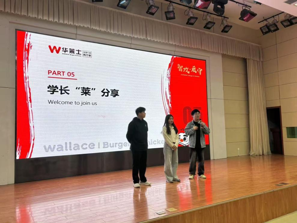 企业宣讲环节,华莱士(山东)企业负责人赵晓薇详细介绍了企业发展历程、连锁餐饮行业趋势及“新锐管理者计划”,并面向经贸学院开放供应链管理、区域运营、数字化营销等核心岗位的实习,企业代表特别强调,随着数字化转型加速,具备数据分析能力和服务创新意识的学生将成为重点培养对象。
