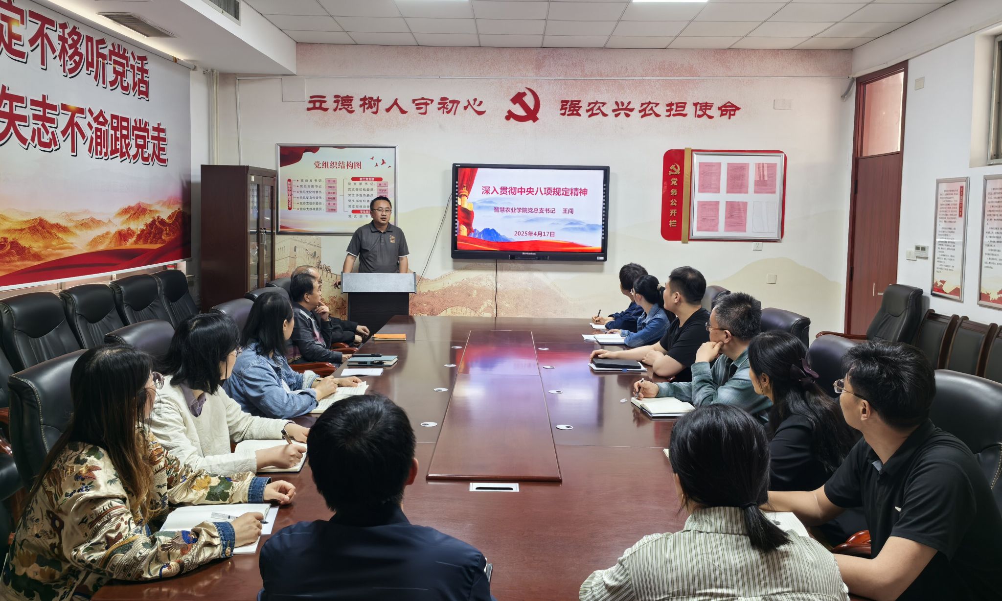 4月17日,智慧农业学院党总支书记王闯以“深入贯彻中央八项规定精神”为题,为全体党员讲授专题党课。