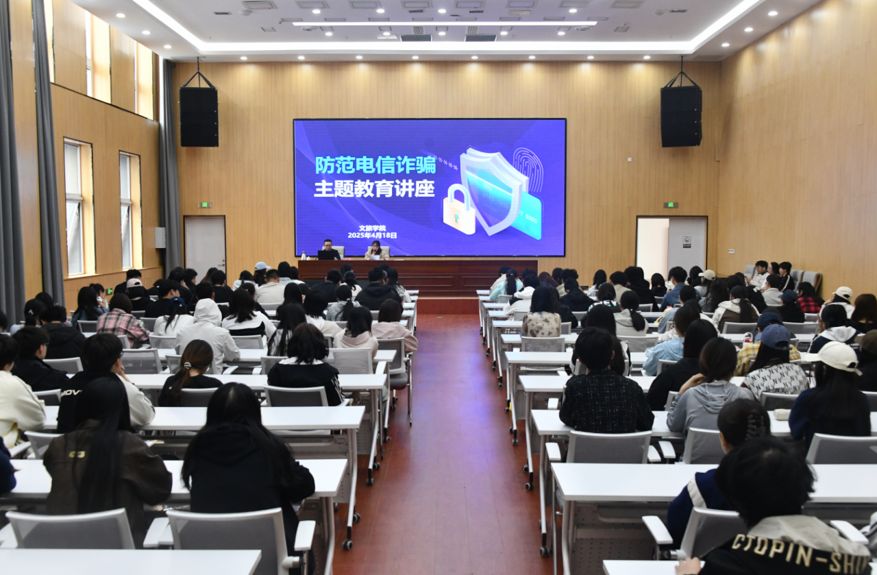 为增强学生安全防范意识,有效识别电信网络诈骗,确保良好的校园环境,4月18日,文旅学院邀请保卫科教师张广建开展反诈知识讲座。文旅学院全体辅导员、班主任、宿舍长、200余名学生代表参加。