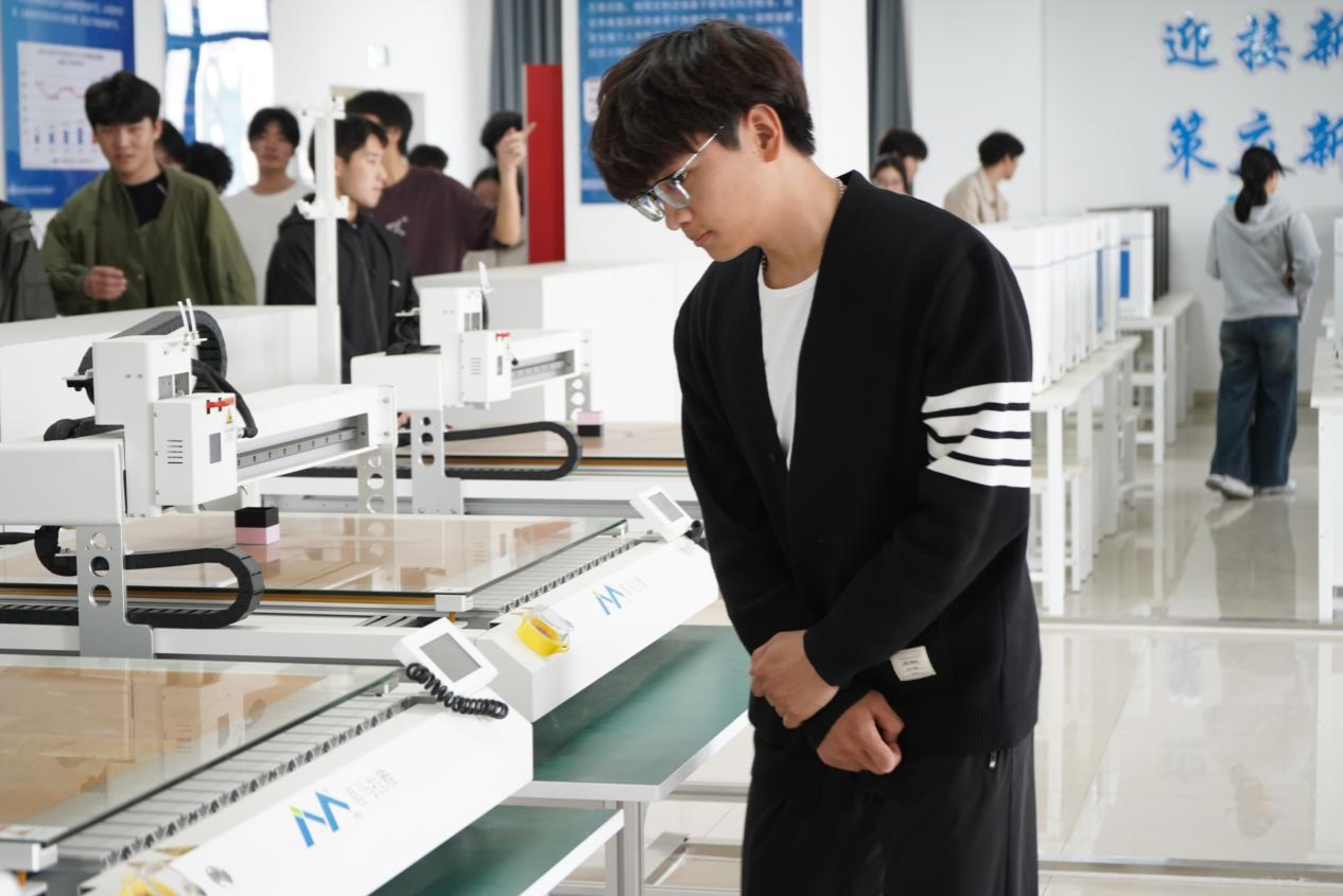 在老师陪同下,学生参观了一楼、二楼、三楼、十楼实训基地,该基地是学校联合多家智能制造头部企业共建的产学研一体化平台,配备工业机器人、数字孪生系统、智能生产线等先进设备,高度还原企业真实生产环境。仿真基地聚焦智能装备操作、生产流程优化、工业大数据分析等核心技能模块,学生可以分组完成“智能产线故障诊断”“数字化工艺设计”等实战项目,并接受企业导师的现场考核。