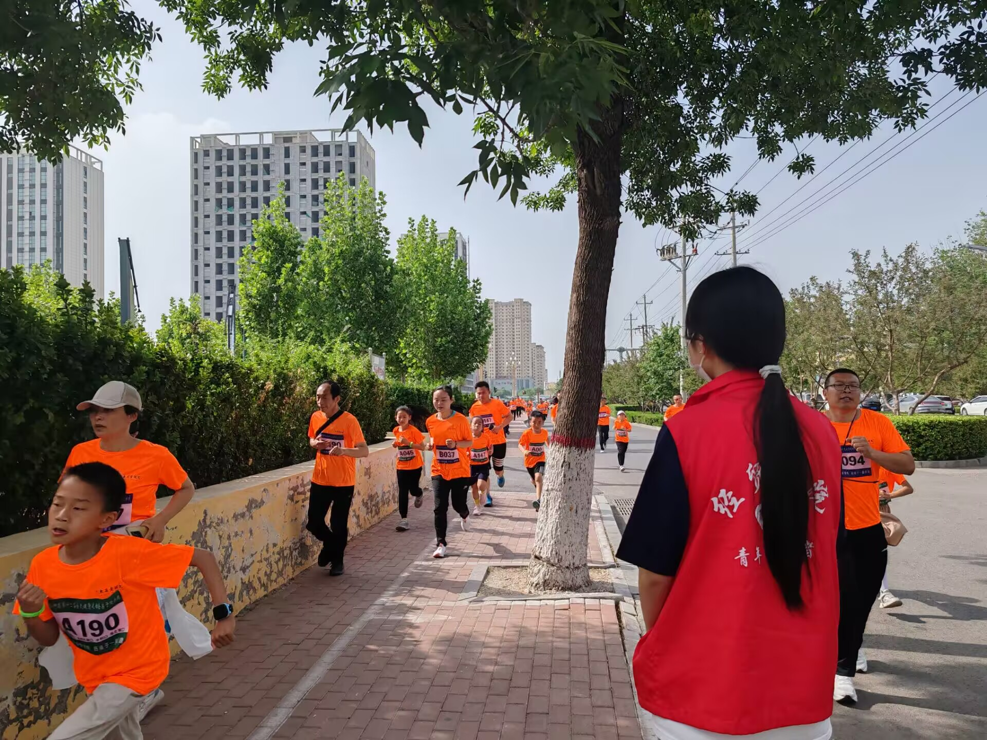 活动当日,志愿者们早早抵达现场,于起点、沿途路口及终点等关键位置待命。活动中,他们引导亲子家庭有序起跑,为不熟悉路线的家庭耐心指路,全力保障活动顺畅进行。面对人员聚集情况,志愿者迅速开展疏导,维持现场秩序。