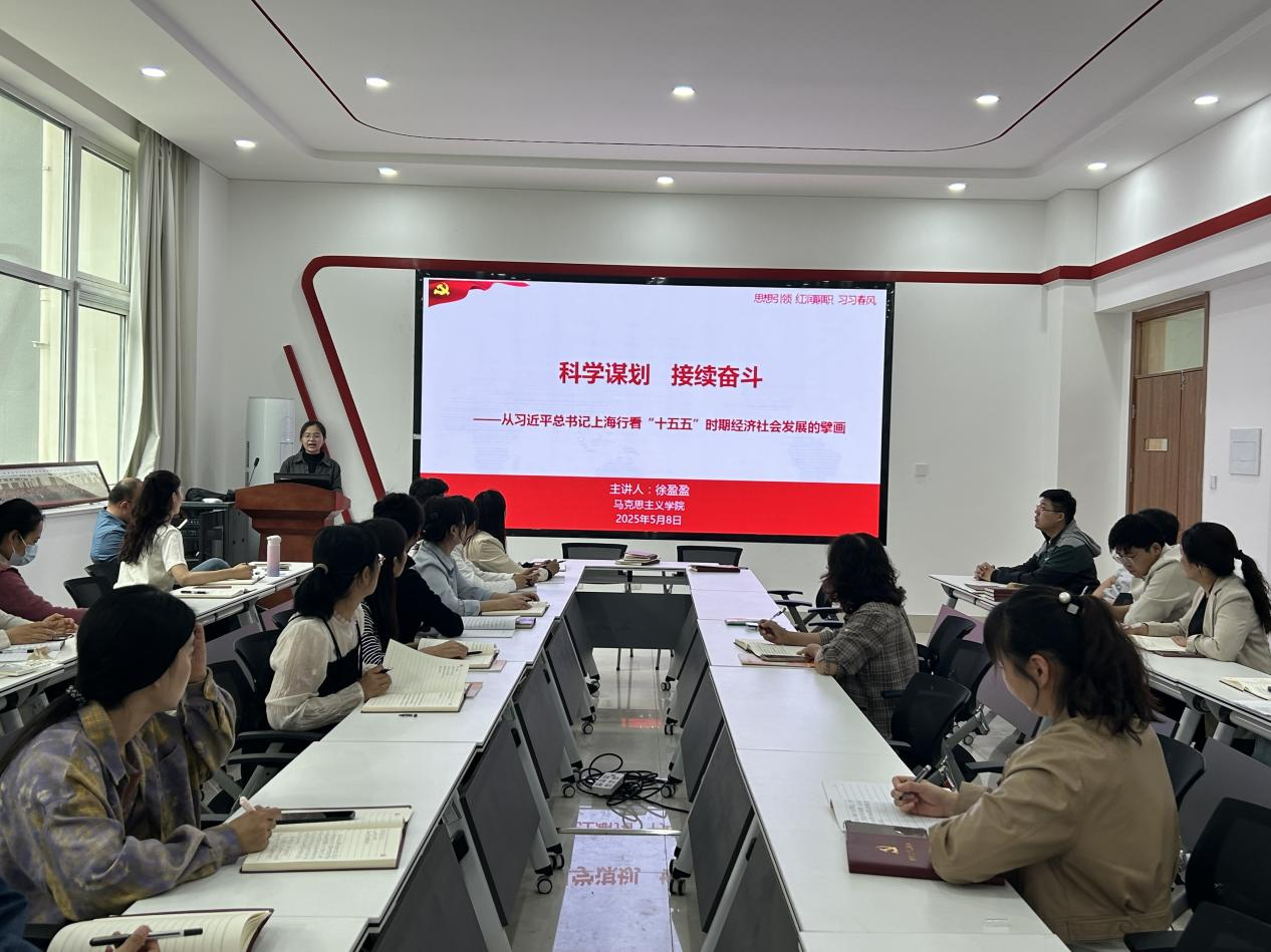 5月8日,马克思主义学院开展“思想引领 红润聊职”行动,党员教师徐盈盈以《科学谋划 接续奋斗》为题,带领全体党员教师共同进行了“从习近平总书记上海行看‘十五五’时期经济社会发展的擘画”学习。